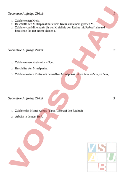 Arbeitsblatt: Arbeitsaufträge Zirkel