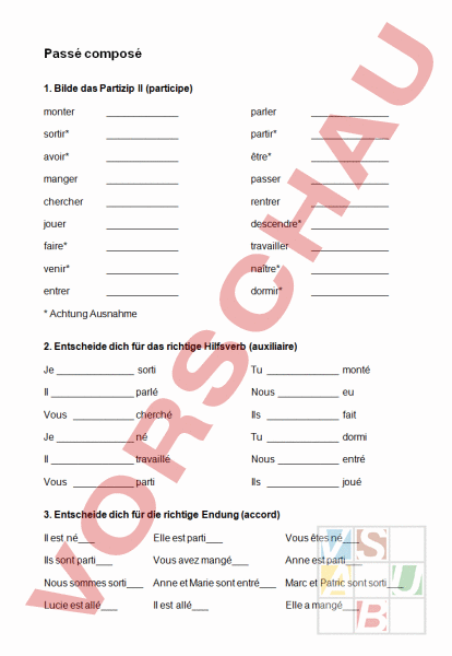 Arbeitsblatt: Passe Composé