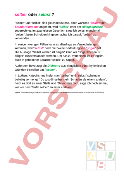 Arbeitsblatt: "Selber" oder "selbst"?