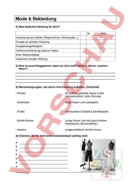 Arbeitsblatt: Kriterien beim Kleidereinkauf
