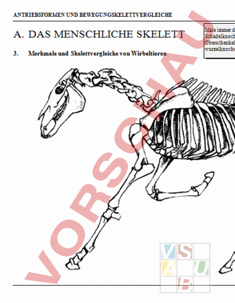 Arbeitsblatt: Skelettvergleiche bei Wirbeltieren