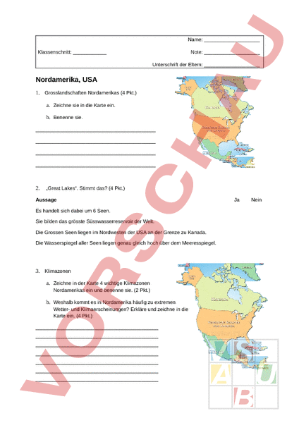 Arbeitsblatt: Prüfung USA