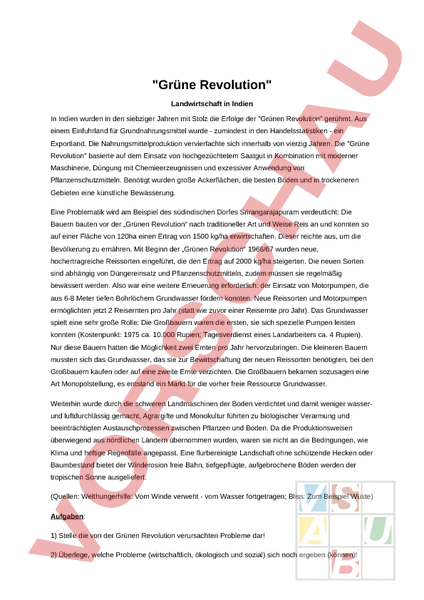 Arbeitsblatt: Arbeitsauftrag Grüne Revolution