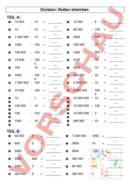 Arbeitsblatt: Nullen streichen (Division)