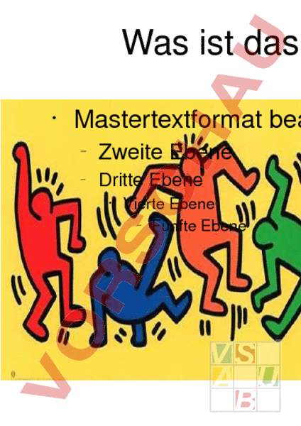 Was ist das? • Mastertextformat bearbeiten – Zweite Ebene – Dritte Ebene • Vierte Ebene – Fünfte Ebene Kunst des Keith Haring • Mastertextformat bearbeiten – Zweite Ebene – Dritte Ebene • Vierte Ebene – Fünfte Ebene Erste Bilder • Mastertextformat bearbeiten – Zweite Ebene – Dritte Ebene • Vierte Ebene – Fünfte Ebene Teil 1: Skizze • Mastertextformat bearbeiten – Zweite Ebene – Dritte Ebene • Vierte Ebene – Fünfte Ebene Teil 2: Figuren einfärben • Mastertextformat bearbeiten – Zweite Ebene – Dritte Ebene • Vierte Ebene – Fünfte Ebene Teil 3: Umgebung einfärben • Mastertextformat bearbeiten – Zweite Ebene – Dritte Ebene • Vierte Ebene – Fünfte Ebene Komplexere Kunstwerke • Mastertextformat bearbeiten – Zweite Ebene – Dritte Ebene • Vierte Ebene – Fünfte Ebene Unser Projekt: Wir zeichnen eine eigene tanzende Figur • Mastertextformat bearbeiten – Zweite Ebene – Dritte Ebene • Vierte Ebene – Fünfte Ebene Auftrag 1. Schritt: Mit Bleistift Skizze machen. 2. Schritt: Konturen mit Filzstift nachfahren 3. Schritt: einfärben mit Farbstiften 4. letzter Schritt: Unten rechts aufs Blatt kommt der Name und der Titel eueres Kunstwerks. Lektionsziel Kriterien zu der Figur: • Sie soll gut zu dem Bild passen. • Sie soll kein Gesicht haben. • Ihr Körper soll eine leuchtende Farbe haben. • Sie soll einen schwarzen Rand haben. • Sie soll eine andere Tanzbewegung machen.