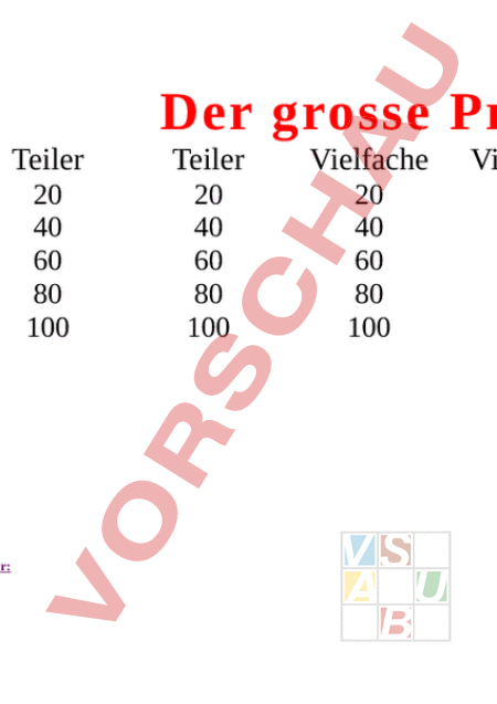 Arbeitsblatt: Spiel um Teiler/ Vielfaches