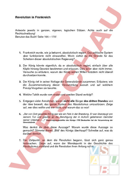 Fragen zum Thema "Revolution in Frankreich" basierend auf dem Buch "Durch Geschichte zur Gegenwart"