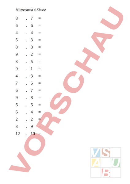 Blitzrechnen Multiplikation 4. Klasse