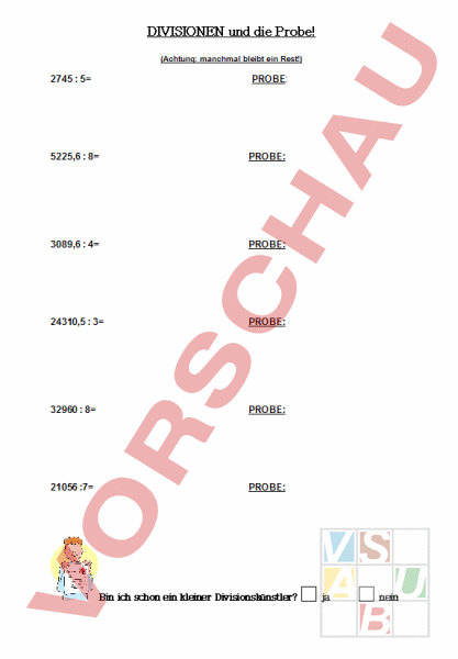 Arbeitsblatt: einfache Divisionen mit Probe