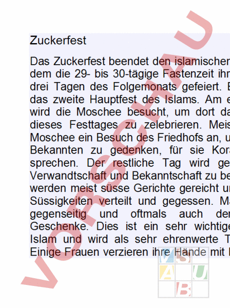 Arbeitsblatt: Zuckerfest