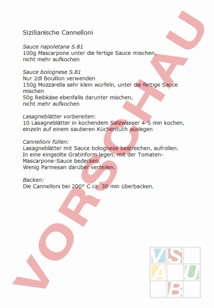 Arbeitsblatt: Sizilianische Cannelloni