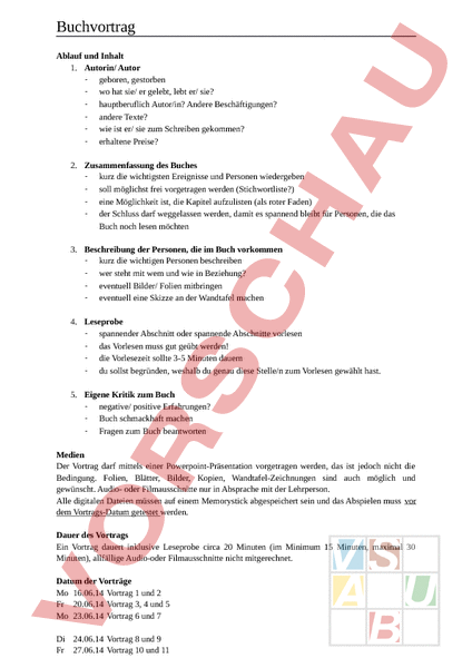 Arbeitsblatt: Angaben zu einem Buchvortrag