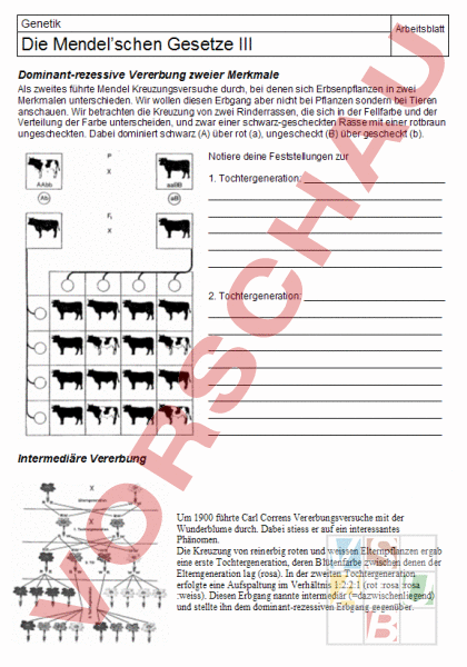 Arbeitsblatt: Die Mendel'schen Gesetze III