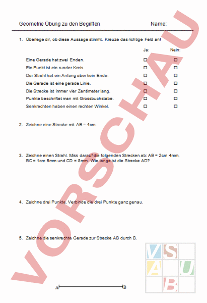 Arbeitsblatt: Gerade, Punkt, Stecke, Strahl, Senkrechte