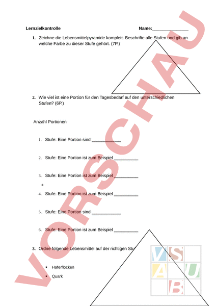 Arbeitsblatt: Lernzielkontrolle Lebensmittelpyramide