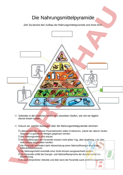 Arbeitsblatt: Aufbau der Nahrungsmittelpyramide