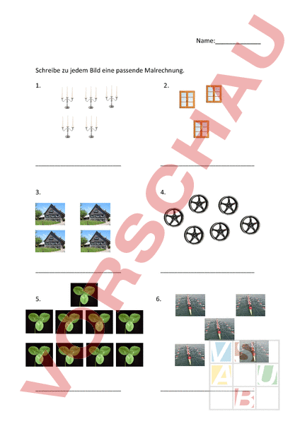 Name:_ Schreibe zu jedem Bild eine passende Malrechnung. 1. 2. 4. 3. 5. 6.