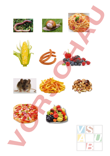 Arbeitsblatt. Richtige Nahrungsmittel ausschneiden und aufkleben.