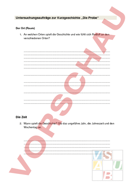 Arbeitsblatt: Kurzgeschichte "Die Probe" - Arbeitsauftrag 3