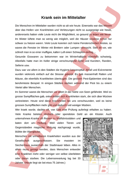 Arbeitsblatt: Krank sein im Mittelalter