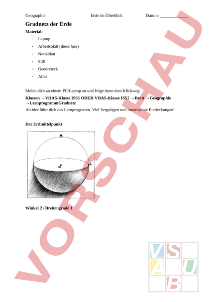 Arbeitsblatt: Lernprogramm Gradnetz der Erde