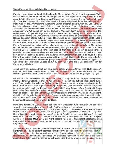 Arbeitsblatt: Wenn Fuchs und Hase sich gute Nacht sagen
