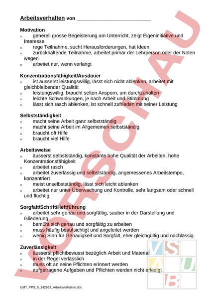 Arbeitsblatt: Arbeitsverhalten