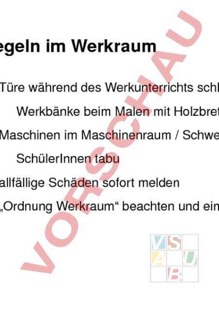 Arbeitsblatt: Regeln im Werkraum
