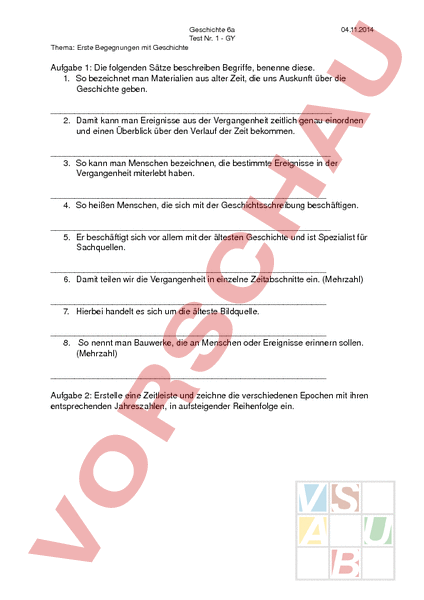 Arbeitsblatt: Test - Erste Begegnung mit Geschichte