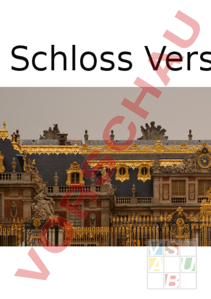 Schloss Versailles Das Schloss Versailles • • • • • Ursprünglich ein Jagdschloss 18 km südlich von Paris Ausgebaut durch Ludwig XIV. «Symbol der Macht» Bauzeit: 27 Jahre (Schloss); 40 Jahre (Garten) • 36 Arbeiter, Soldaten, etc.; 6000 Pferde • Arbeit bei Regen, Schnee, Hitze - viele Tote Das Schloss Versailles • • • • 2000 Räume, aber wenige Toiletten 20000 Höflinge Keine zentrale Heizung Spiegelsaal ist der prächtigste Raum. Er wird für Staatsempfänge genutzt. (noch heute) • Im Apollo-Saal befindet sich das Bildnis von Ludwig XIV. Der Garten von Versailles • 150000 Pflanzen • 1400 Springbrunnen und Seen - 5 Mio. Liter Wasser pro Tag - riesige Pumpen und Schöpfräder für Wasser • Garten sollte der «Grösste und Schönste» sein • Der Mensch fühlt sich klein und unwichtig • Ist für den König das Paradies auf Erden Erläuterungen zum französischen Garten • Verschwenderische Formen: Erläuterungen zum französischen Garten • Rolle der Mystik: Erläuterungen zum barocken Garten • Die barocken Gartenanlagen dienten ausschließlich dem Vergnügen. Es waren Erlebnisräume im Freien, die an Vielfalt gartenkünstlerischer Ideen und an Logik des Aufbaus unübertroffen waren. Neben dem Lustwandeln erreichte der Garten seine wahre Bestimmung bei den Festen, die Tage, manchmal Wochen andauerten. Man versammelten sich dann dort, um Konzerte und Opern, Ballette zu Wasser und zu Lande, Seeschlachten auf den Kanälen und Feuerwerke mitzuerleben. (Uni-Karlsruhe.de) Barock • Ca. 1575 – 1770 • Geprägt durch üppige Formen, prächtige Bauwerke • Mix aus diversen anderen Kunststilen • Stilmittel: – Reiche Verzierungen – Gegensätze (Bsp. arm – reich) – Götterbilder • Darstellung der Macht (einzelne Menschen werden als als den Göttern gleich dargestellt)