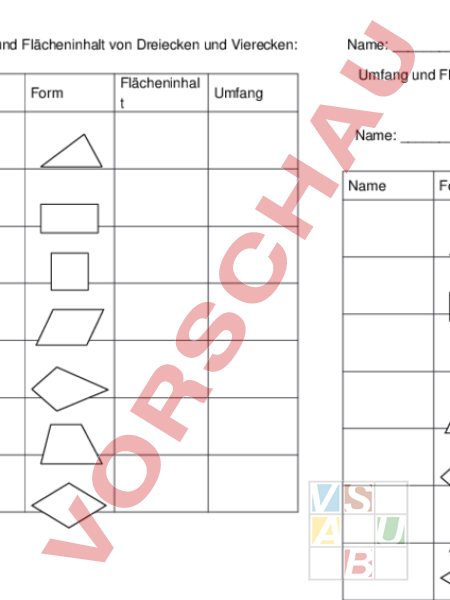 Umfang und Flächeninhalt von Dreiecken und Vierecken: Name Form Flächeninhal Umfang Name: Punkte: 21 Note: Umfang und Flächeninhalt von Dreiecken und Vierecken Name: Punkte: 21 Name Form Note: Flächeninhalt Umfang