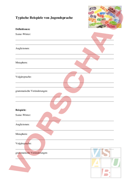 Arbeitsblatt zu typischen Beispielen der Jugendsprache inkl. Lösung