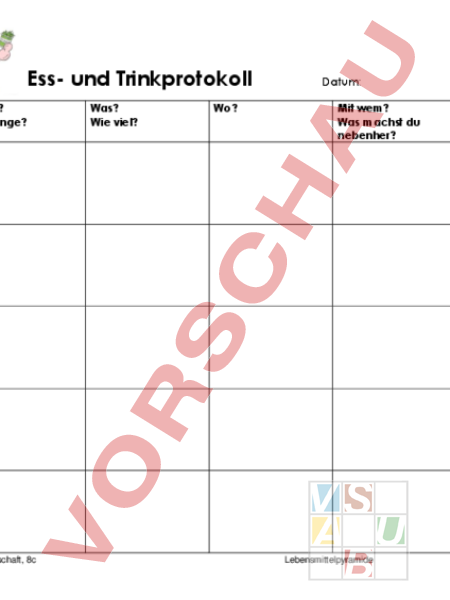 Essprotokoll. SuS führen ein Essprotokoll, welches sie zwingt, ihr Essverhalten zu dokumentieren. Habe auch den Auswertungsauftrag hochgeladen.