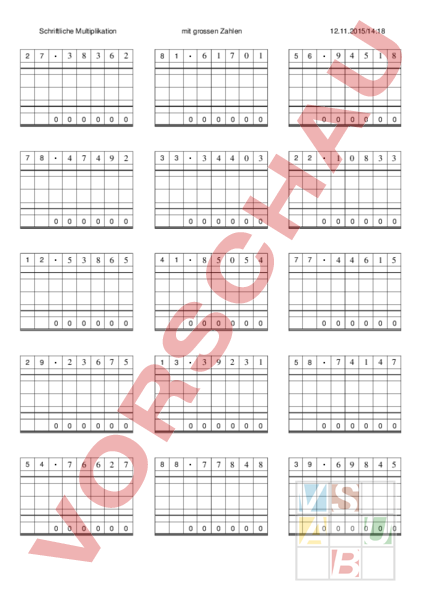 Schriftliche Multiplikation 2 7 1 2 5 mit grossen Zahlen 7 3 8 3 6 2 0 0 0 0 0 0 0 8 4 7 4 9 2 0 0 0 0 0 0 0 2 5 3 8 6 5 0 0 0 0 0 0 0 9 2 3 6 7 5 0 0 0 0 0 0 0 4 7 6 6 2 7 0 0 0 0 0 0 0 8 3 4 1 8 12.11.2015/14:18 1 6 1 7 0 1 0 0 0 0 0 0 0 3 3 4 4 0 3 0 0 0 0 0 0 0 1 8 5 0 5 4 0 0 0 0 0 0 0 3 3 9 2 3 1 0 0 0 0 0 0 0 8 7 7 8 4 8 0 0 0 0 0 0 0 5 2 7 5 3 6 9 4 5 1 8 0 0 0 0 0 0 0 2 1 0 8 3 3 0 0 0 0 0 0 0 7 4 4 6 1 5 0 0 0 0 0 0 0 8 7 4 1 4 7 0 0 0 0 0 0 0 9 6 9 8 4 5 0 0 0 0 0 0 0