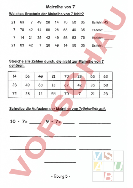 Arbeitsblatt: Mahlreihe von 7