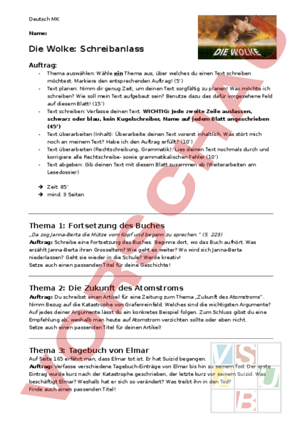 Arbeitsblatt: Die Wolke - Schreibanlass