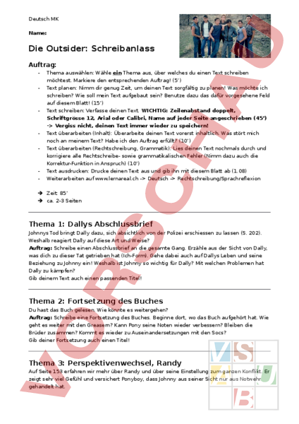 Arbeitsblatt: Die Outsider - Schreibanlass