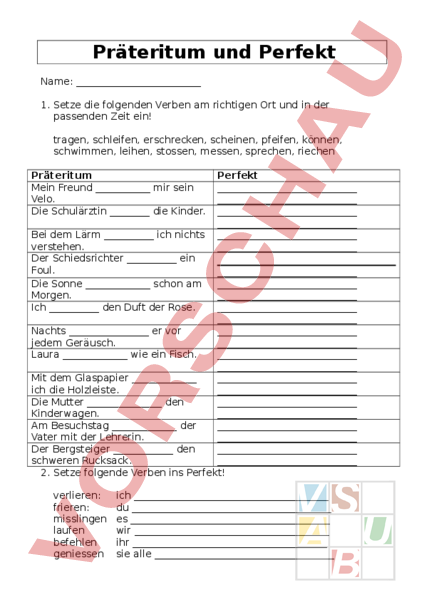 Arbeitsblatt: Präteritum und Perfekt