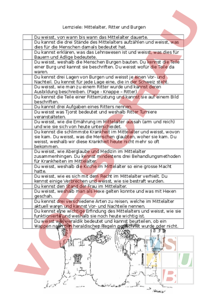 Lernziele zum Thema Mittelalter, Ritter und Burgen.