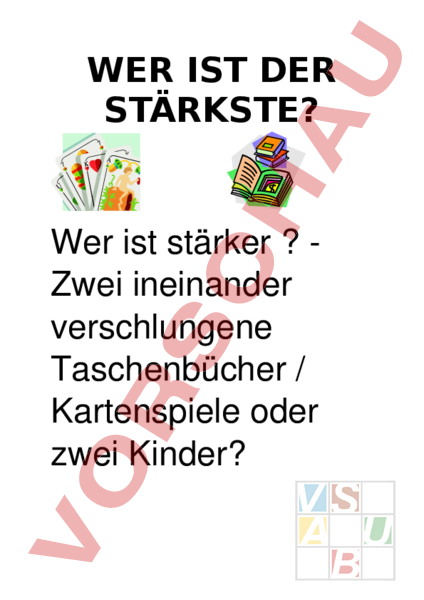 WER IST DER STÄRKSTE? Wer ist stärker Zwei ineinander verschlungene Taschenbücher Kartenspiele oder zwei Kinder? Diskutiert untereinander!