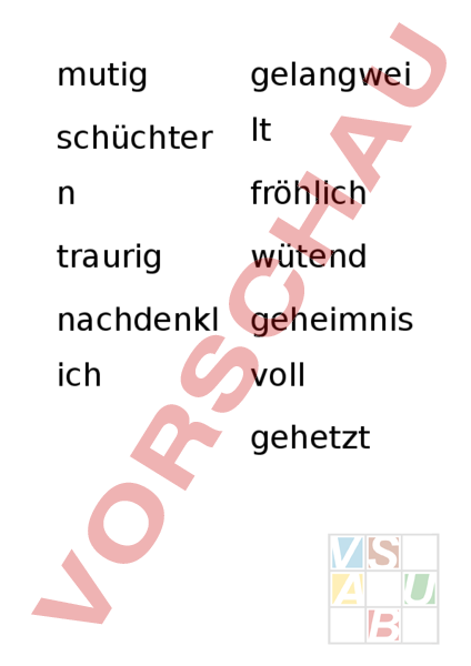 mutig gelangwei schüchter lt fröhlich traurig wütend nachdenkl geheimnis ich voll gehetzt