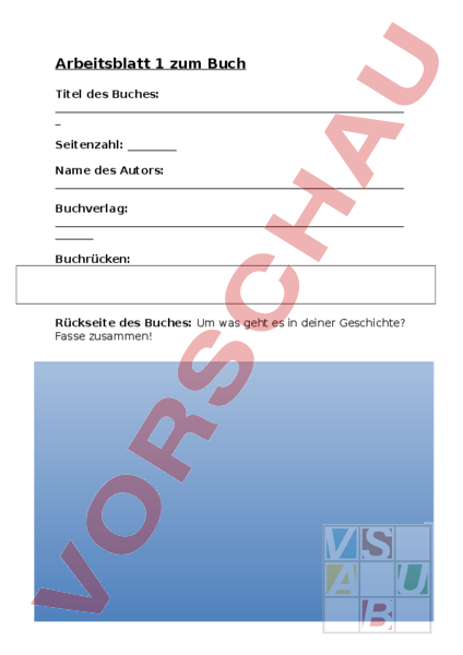 Arbeitsblatt 1 zum Buch Titel des Buches: Seitenzahl: Name des Autors: Buchverlag: Buchrücken: Rückseite des Buches: Um was geht es in deiner Geschichte? Fasse zusammen!