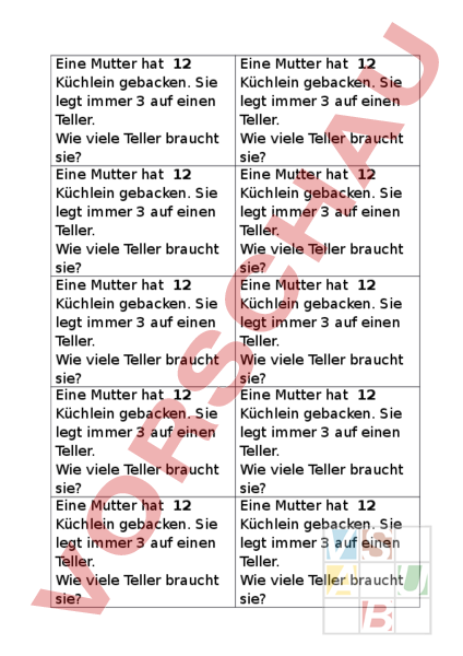 Eine Mutter hat 12 Küchlein gebacken. Sie legt immer 3 auf einen Teller. Wie viele Teller braucht sie? Eine Mutter hat 12 Küchlein gebacken. Sie legt immer 3 auf einen Teller. Wie viele Teller braucht sie? Eine Mutter hat 12 Küchlein gebacken. Sie legt immer 3 auf einen Teller. Wie viele Teller braucht sie? Eine Mutter hat 12 Küchlein gebacken. Sie legt immer 3 auf einen Teller. Wie viele Teller braucht sie? Eine Mutter hat 12 Küchlein gebacken. Sie legt immer 3 auf einen Teller. Wie viele Teller braucht sie? Eine Mutter hat 12 Küchlein gebacken. Sie legt immer 3 auf einen Teller. Wie viele Teller braucht sie? Eine Mutter hat 12 Küchlein gebacken. Sie legt immer 3 auf einen Teller. Wie viele Teller braucht sie? Eine Mutter hat 12 Küchlein gebacken. Sie legt immer 3 auf einen Teller. Wie viele Teller braucht sie? Eine Mutter hat 12 Küchlein gebacken. Sie legt immer 3 auf einen Teller. Wie viele Teller braucht sie? Eine Mutter hat 12 Küchlein gebacken. Sie legt immer 3 auf einen Teller. Wie viele Teller braucht sie? Eine Mutter hat 12 Küchlein gebacken. Sie legt immer 3 auf einen Teller. Wie viele Teller braucht sie? Eine Mutter hat 12 Küchlein gebacken. Sie legt immer 3 auf einen Teller. Wie viele Teller braucht sie? In einer Schulklasse sind 21 Kinder. In der Turnstunde bilden sie Siebenergruppen. Wie viele Gruppen gibt es? In einer Schulklasse sind 21 Kinder. In der Turnstunde bilden sie Siebenergruppen. Wie viele Gruppen gibt es? In einer Schulklasse sind 21 Kinder. In der Turnstunde bilden sie Siebenergruppen. Wie viele Gruppen gibt es? In einer Schulklasse sind 21 Kinder. In der Turnstunde bilden sie Siebenergruppen. Wie viele Gruppen gibt es? In einer Schulklasse sind 21 Kinder. In der Turnstunde bilden sie Siebenergruppen. Wie viele Gruppen gibt In einer Schulklasse sind 21 Kinder. In der Turnstunde bilden sie Siebenergruppen. Wie viele Gruppen gibt es? In einer Schulklasse sind 21 Kinder. In der Turnstunde bilden sie Siebenergruppen. Wie viele Gruppen gibt es? In einer Schulklasse sind 21 Kinder. In der Turnstunde bilden sie Siebenergruppen. Wie viele Gruppen gibt es? In einer Schulklasse sind 21 Kinder. In der Turnstunde bilden sie Siebenergruppen. Wie viele Gruppen gibt es? In einer Schulklasse sind 21 Kinder. In der Turnstunde bilden sie Siebenergruppen. Wie viele Gruppen gibt es? es? In einer Schulklasse sind 21 Kinder. In der Turnstunde bilden sie Siebenergruppen. Wie viele Gruppen gibt es? In einer Schulklasse sind 21 Kinder. In der Turnstunde bilden sie Siebenergruppen. Wie viele Gruppen gibt es? 24 Eier werden in Sechserschachteln abgepackt. Wie viele Schachteln braucht es? 24 Eier werden in Sechserschachteln abgepackt. Wie viele Schachteln braucht es? 24 Eier werden in Sechserschachteln abgepackt. Wie viele Schachteln braucht es? 24 Eier werden in Sechserschachteln abgepackt. Wie viele Schachteln braucht es? 24 Eier werden in Sechserschachteln abgepackt. Wie viele Schachteln braucht es? 24 Eier werden in Sechserschachteln abgepackt. Wie viele Schachteln braucht es? 24 Eier werden in Sechserschachteln abgepackt. Wie viele Schachteln braucht es? 24 Eier werden in Sechserschachteln abgepackt. Wie viele Schachteln braucht es? 24 Eier werden in Sechserschachteln abgepackt. Wie viele Schachteln braucht es? 24 Eier werden in Sechserschachteln abgepackt. Wie viele Schachteln braucht es? 24 Eier werden in Sechserschachteln abgepackt. Wie viele Schachteln braucht es? 24 Eier werden in Sechserschachteln abgepackt. Wie viele Schachteln braucht es? In einer Kiste hat es 48 Spieltiere. 6 Kinder teilen die Tiere untereinander auf. Wie viele Tiere kriegt jedes Kind? In einer Kiste hat es 48 Spieltiere. 6 Kinder teilen die Tiere untereinander auf. Wie viele Tiere kriegt jedes Kind? In einer Kiste hat es 48 Spieltiere. 6 Kinder teilen die Tiere untereinander auf. Wie viele Tiere kriegt jedes Kind? In einer Kiste hat es 48 Spieltiere. 6 Kinder teilen die Tiere untereinander auf. Wie viele Tiere kriegt jedes Kind? In einer Kiste hat es 48 Spieltiere. 6 Kinder teilen die Tiere untereinander auf. Wie viele Tiere kriegt jedes Kind? In einer Kiste hat es 48 Spieltiere. 6 Kinder teilen die Tiere untereinander auf. Wie viele Tiere kriegt jedes Kind? In einer Kiste hat es 48 Spieltiere. 6 Kinder teilen die Tiere untereinander auf. Wie viele Tiere kriegt jedes Kind? In einer Kiste hat es 48 Spieltiere. 6 Kinder teilen die Tiere untereinander auf. Wie viele Tiere kriegt jedes Kind? In einer Kiste hat es 48 Spieltiere. 6 Kinder teilen die Tiere untereinander auf. Wie viele Tiere kriegt jedes Kind? In einer Kiste hat es 48 Spieltiere. 6 Kinder teilen die Tiere untereinander auf. Wie viele Tiere kriegt jedes Kind? In einer Kiste hat es 48 Spieltiere. 6 Kinder teilen die Tiere untereinander auf. Wie viele Tiere kriegt jedes Kind? In einer Kiste hat es 48 Spieltiere. 6 Kinder teilen die Tiere untereinander auf. Wie viele Tiere kriegt jedes Kind?