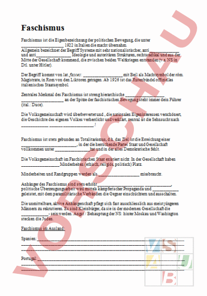 Lückentext zum Faschismus allgemein. Was ist Faschismus eigentlich, welche Merkmale weisst er auf.
