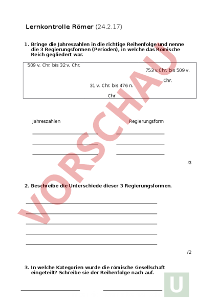 Arbeitsblatt: Prüfung Römer