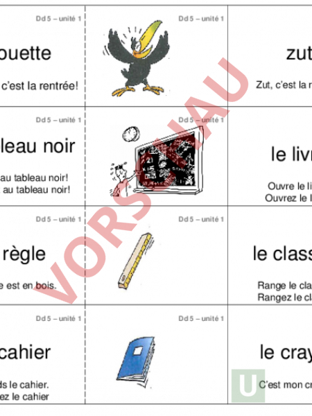 Dd 5 – unité 1 Dd 5 – unité 1 Dd 5 – unité 1 chouette zut Chouette, cest la rentrée! Zut, cest la rentrée! Dd 5 – unité 1 Dd 5 – unité 1 le tableau noir – unité 1 Ouvre le livre. Ouvrez le livre. Dd 5 – unité 1 Dd 5 – unité 1 la règle le classeur La règle est en bois. Range le classeur. Rangez le classeur Dd 5 – unité 1 Dd 5 le livre Regarde au tableau noir! Regardez au tableau noir! Dd 5 – unité 1 Dd 5 – unité 1 Dd 5 – unité 1 Dd 5 – unité 1 Dd 5 – unité 1 le cahier le crayon Prends le cahier. Prenez le cahier Cest mon crayon. Dd 5 – unité 1 Dd 5 – unité 1 Dd 5 – unité 1 Dd 5 – unité 1 Dd 5 – unité 1 le stylo la gomme Montremoi ton stylo! Montrez moi votre stylo! Cest ma gomme. Dd 5 – unité 1 Dd 5 – unité 1 la trousse la chaise Je me assieds sur la chaise. Dd 5 – unité 1 la table Dans ma trousse il a des crayons, des stylos et une gomme. Dd 5 – unité 1 Dd 5 – unité 1 Dd 5 – unité 1 La table est en bois. Dd 5 – unité 1 Dd 5 – unité 1 la matière scolaire Le sport est ma Dd 5 – unité 1 Dd 5 – unité 1 Dd 5 – unité 1 Dd 5 – unité 1 lallemand (m) le français Je parle allemande. Je parle aussi le français. Dd 5 – unité 1 Dd 5 – unité 1 Dd 5 – unité 1 les mathémathiques (f pl) Jaime parler langlais. Je naime pas les maths. les jours (m) de la semaine Ma jour préfère est le dimanche. Dd 5 – unité 1 les maths langlais (m) Dd 5 – unité 1 Dd 5 – unité 1 Dd 5 – unité 1 Dd 5 – unité 1 lundi Je naime pas le lundi. Dd 5 – unité 1 Dd 5 – unité 1 Dd 5 – unité 1 Dd 5 – unité 1 mardi mercredi mardi jai le sport. Mercredi laprésmidi nous avons conge. Dd 5 – unité 1 Dd 5 – unité 1 Dd 5 – unité 1 jeudi vendredi jeudi je fais du sport. vendredi cest bientôt weekend. Dd 5 – unité 1 Dd 5 – unité 1 Dd 5 – unité 1 samedi dimanche Je dors le samedi matain. dimanche je joue avec mes amis. Dd 5 – unité 1 Dd 5 – unité 1 Dd 5 – unité 1 une école dessiner Le nom de mon école cest Buchserbach. Jaime dessiner. Dd 5 – unité 1 Dd 5 – unité 1 Dd 5 – unité 1 Dd 5 – unité 1 Dd 5 – unité 1 Dd 5 – unité 1 Dd 5 – unité 1 calculer chanter Je naime pas calculer. Mon chanteur prèfére cest Justin Biber. Dd 5 – unité 1 Dd 5 – unité 1 Dd 5 – unité 1 expérimenter parler français Jaime experimenter. Japprends parler français. Dd 5 – unité 1 Dd 5 – unité 1