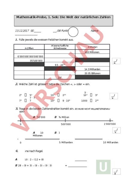 Arbeitsblatt: Test Die Welt der natürliche Zahlen