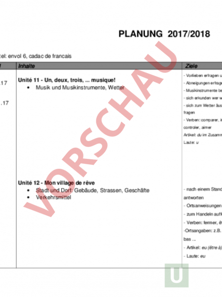 Grobe Jahresplanung mit Lernzielen zu den Unités vom Envol 6