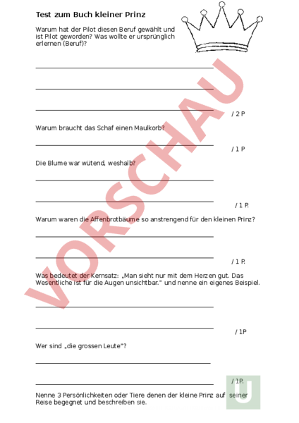 Arbeitsblatt: Test zum Buch kleiner Prinz