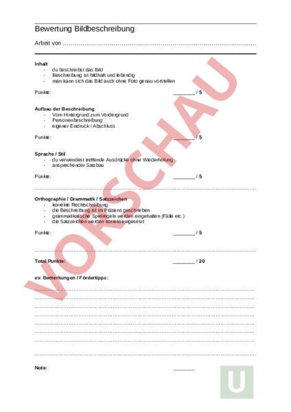 Arbeitsblatt: Beurteilung Bildbeschreibung
